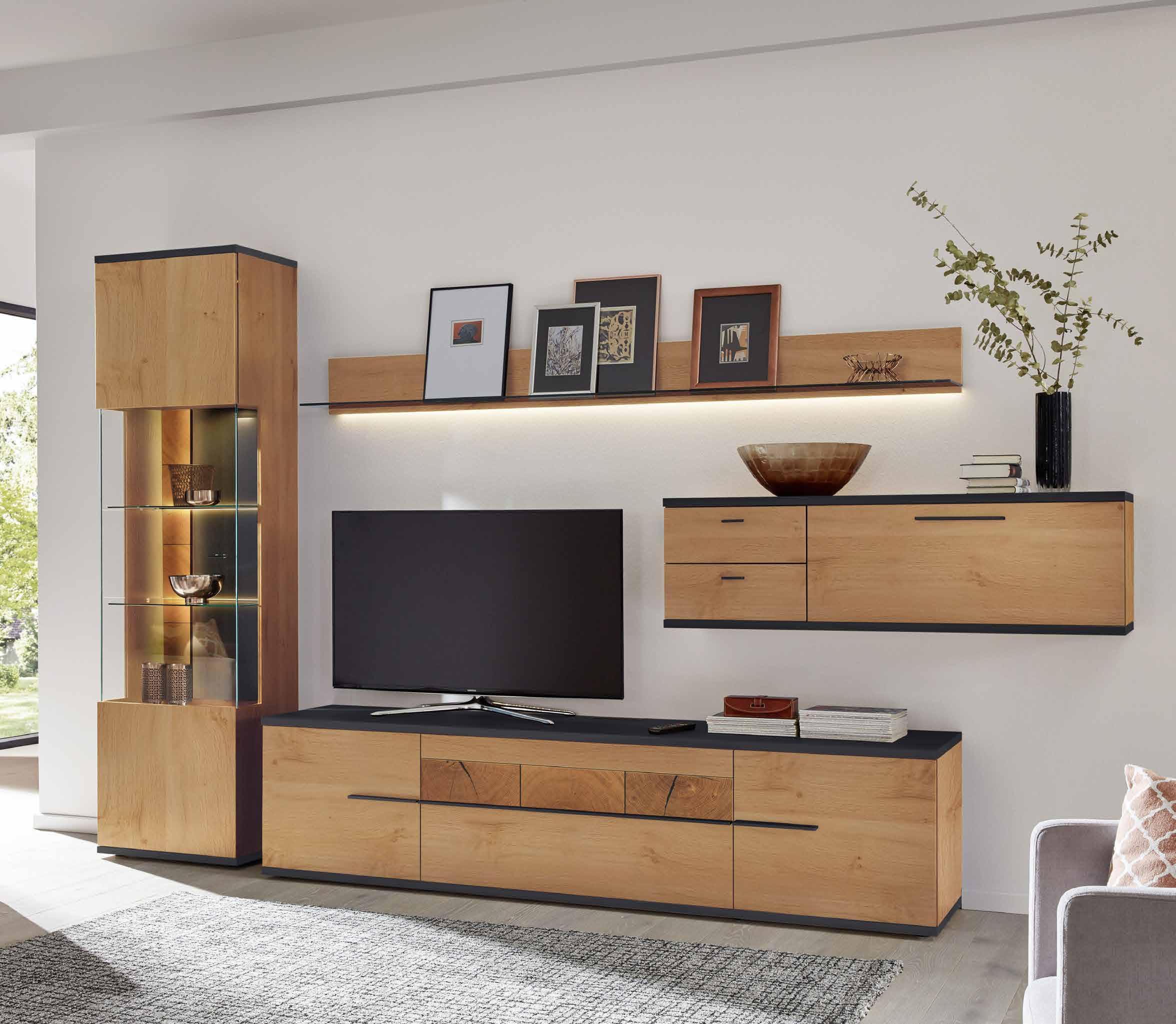 MEDIA CONCEPT liefert mit einer Holzfront noch mehr natürliche Wärme und Wohnlichkeit für jedes Zuhause. Modern interpretiert in der modelltypischen Formensprache und funktional durchdacht bis ins kleinste Detail, sind ideale Lösungen zur Kabelverstauung, Medienintegration und Schubkasteneinteilung für ausreichend Stauraum und Ordnung frei planbar.