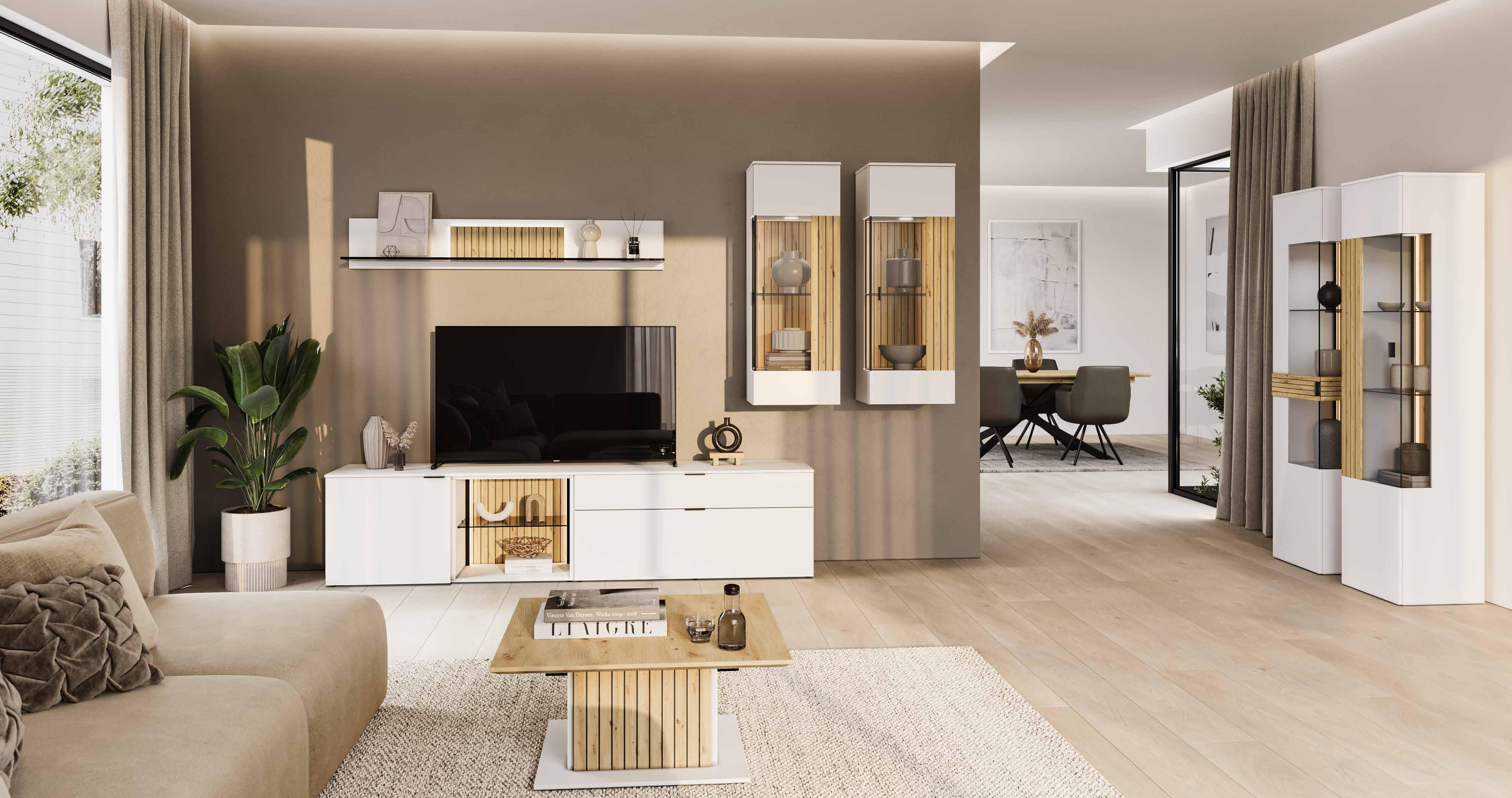 Für uns ist Ihr Wohnraum eine Passion und so steckt auch in diesem Modell die Liebe zum Detail, denn Funktionalität wird bei diesem Modell ebenfalls individuell planbar und passt sich neben der Lichttechnik auch in der Vielfalt der Aufbewahrungsmöglichkeiten oder dem fortschrittlichen Kabel- und Medienmanagement Ihren individuellen Bedürfnissen an.