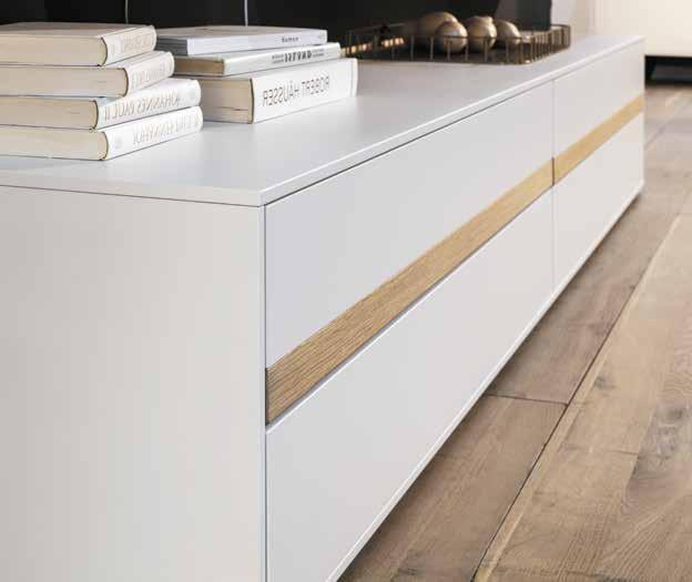 Living spaces are our passion, and this model reflects our love of detail since this design allows you to fully customise functionality, too. It adapts to your individual needs, not only in terms of lighting technology but also in the variety of storage options and advanced cable and media management.