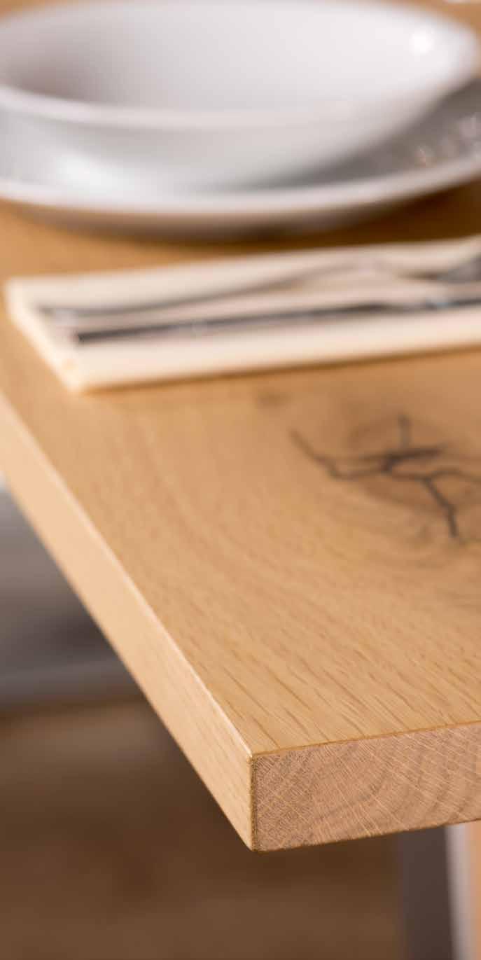 A PARTICULAR QUALITY FEATURE OF OUR TABLES IS THE CONTINUOUS VENEER LEAF – ALSO ON THE PULL-OUT EXTENSION.