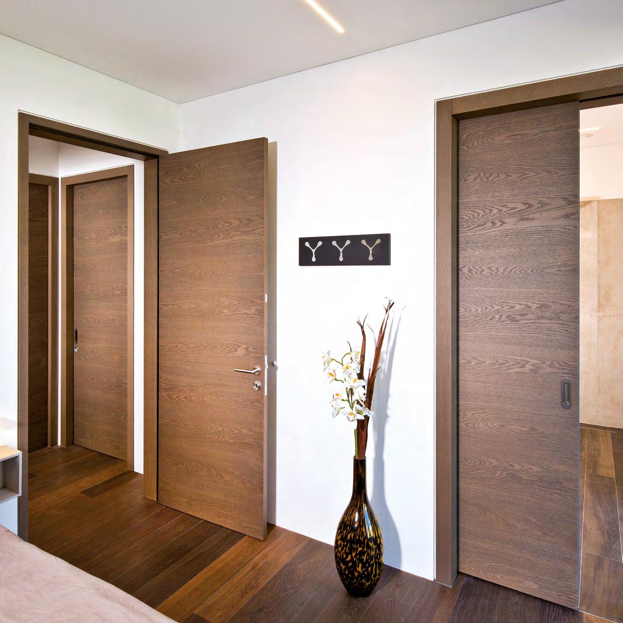 Da hier kein Türstock zu sehen ist, kann beim Erscheinungsbild des Türblattes viel gewagt werden. Besonders lebhaftes Holz mit großzügiger Optik eignet sich hervorragend und verleiht Räumen damit das gewisse Extra. Dunkle Hölzer