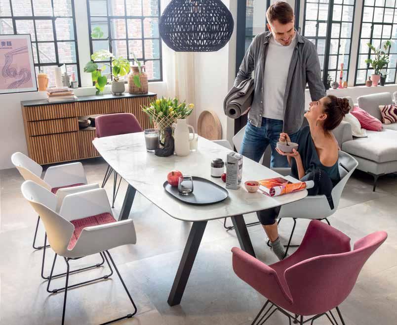 lackiert, 339,-. 08 „TOOON: GENAUSO INDIVIDUELL, WIE DIE MENSCHEN, FÜR DIE ER GEMACHT IST.“ Axel Enthoven, Antwerpen, Designer von RAUM.FREUNDE Tooon 03. Armlehnstuhl Raum.Freunde Tooon, Sitz und Rücken gepolstert rundum mit Stoff bezogen, Stoff Beere 100% Polyester, Gestell: 4-Fuß, Metall schwarz, je 339,-. 04. Armlehnstuhl Raum.Freunde Tooon, Sitz und Rücken gepolstert rundum mit Stoff bezogen, Stoff grau/beige 100% Polyester, Kufengestell Metall schwarz, 339,-. 05. Stuhl Raum.Freunde Tooon, Kunststoffschale weiß, Gestell Holz New Oak, 219,-. 06. Armlehnstuhl Raum.Freunde Tooon, Kunststoffschale schwarz, Kufengestell Metall oder 4-Fuß schwarz, ohne Sitzkissen, 179,-, Sitzkissen 100% Polyester mit Antirutsch-Ausrüstung ca. 45x45 cm, 69,-. 04 05 06 RAUM.FREUNDE YANIS 07. Stuhl RAUM.FREUNDE YANIS 325,–EXTRA BEQUEM DANK ERGONOMISCH GEFORMTER RÜCKENLEHNE. Tischkopfauszug bis 3,00 m Alle Preise sind Abholpreise in Euro inkl. MwSt. und verstehen sich ohne Lieferung und Montage und ohne Deko. Preise und Produkte sind gültig bis 31.12.2022.