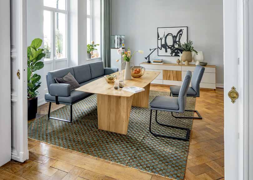 aus klarer Linienführung und sanften Rundungen, die jede Berührung des Naturholzes zum Genuss machen. Mit seinen eingerückten Massivholzbeinen in A-Form eignet sich der taso Tisch hervorragend für die Kombination mit Lang- oder Eckbänken. Entdecken Sie den taso Tisch! qr.team7-home.com/ taso-tisch-video Entdecken Sie den echt.zeit Tisch! qr.team7-home.com/ echt-zeit-tisch-video * UVP inkl. MWSt. sowie Energie- und Materialkostenzuschlag gültig bis auf Weiteres in Österreich und Deutschland. Änderungen, Irrtum, Druck- und Satzfehler vorbehalten! Gestell Stahl verchromt glänzend EUR 526,–* Gestell Stahl schwarz matt EUR 421,–* magnum Freischwinger Stricktex schwarz, ohne Armlehne Kleemann_Prospektseite_041022.indd 2 04.10.22 12:33 TEAM 7