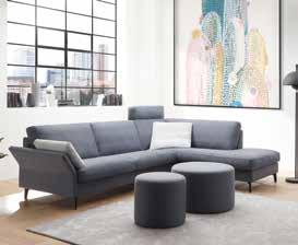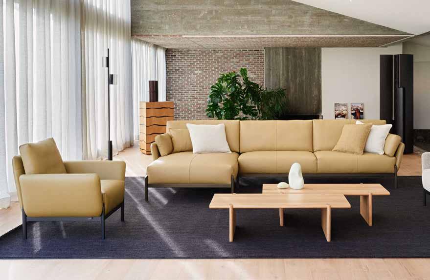 Sofaprogramm Naila zeichnet sich durch seine offene Gestaltung aus – und überrascht. Der Sitz ist bewusst etwas niedriger und tiefer gehalten, ideal zum Entspannen und für