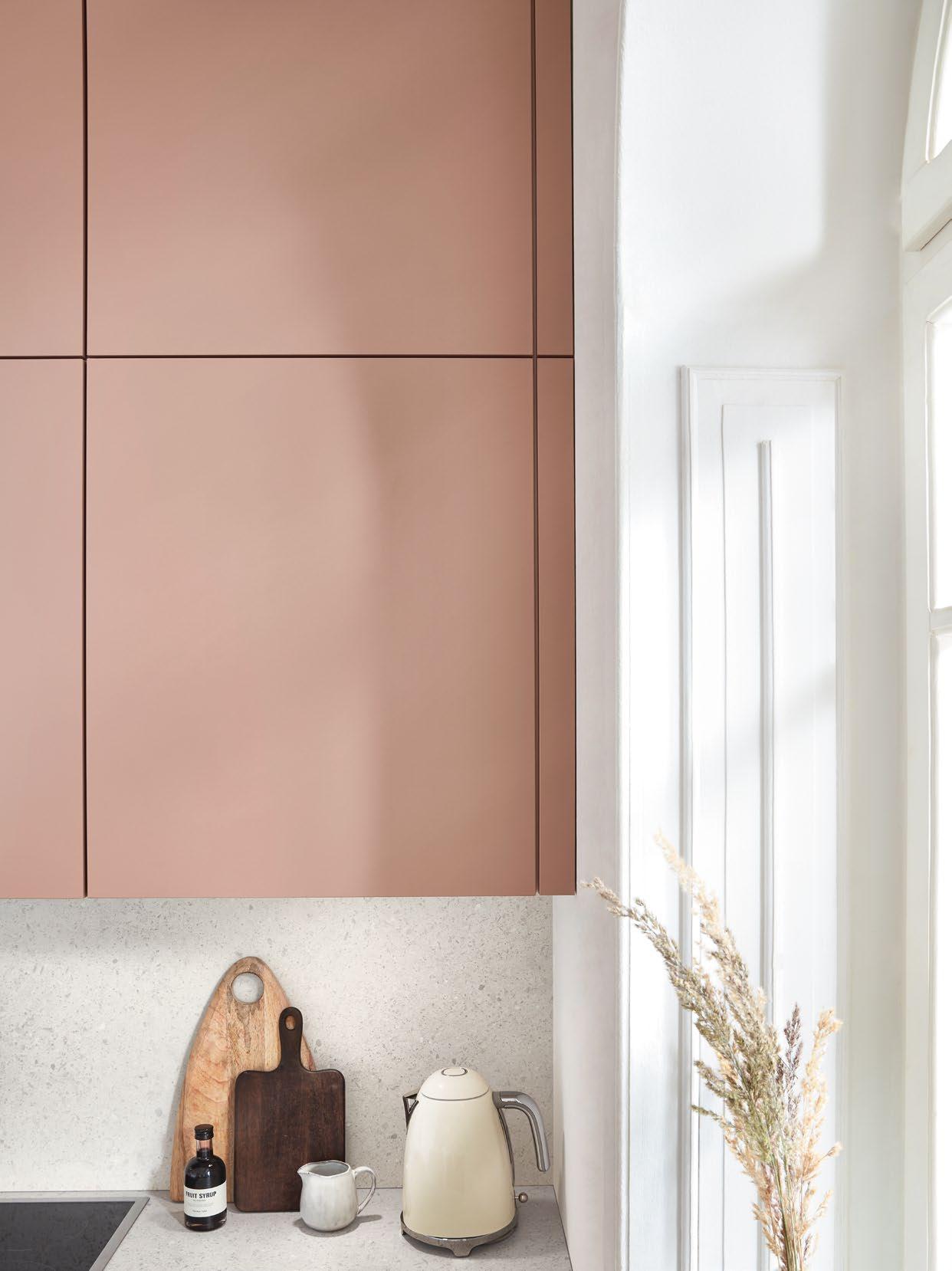 Pastellfarben wie Koralle treffen jetzt in der Küche auf Grau-Nuancen und schaffen eine frische und positive Atmosphäre. Betont wird die softe Ausstrahlung des Farbtons durch die sanft geschwungene Abschlussfront Curve.