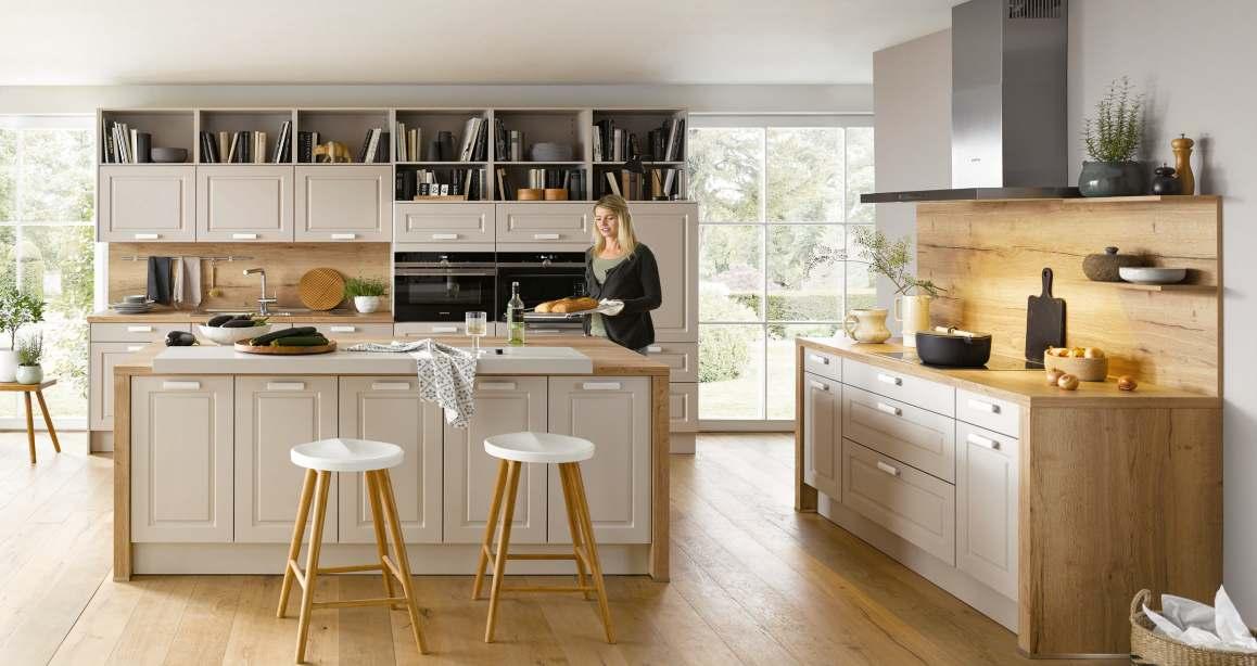 Die Landhausküche im nordischen Look, so praktisch mit offenen Regalen.