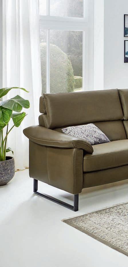 Man sieht es der Gruppe von vorne nicht an. Der Beschlag mit der KopfteilHöhenverstellung, obmanuelloder elektrisch, ist durch das Kissen fast vollständig verdeckt. Der Winkel lässt sich zusätzlich noch individuell Ihrer Position anpassen. Mehrpreis manuell 175,-