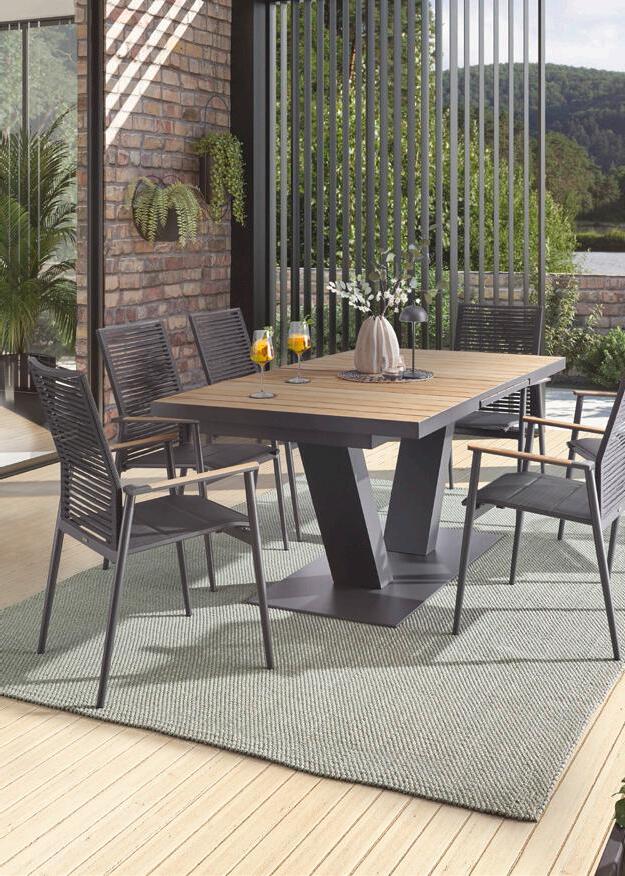 Wer im Haus aktuelles Design und Komfort liebt, muss darauf in seinem OutdoorBereich nicht verzichten. Im Gegenteil. Der eigene Garten, die Terrasse oder der Balkon lassen sich mit einer großen Auswahl an modernen Outdoor-Möbeln spielend leicht in ein zusätzliches Zimmer verwandeln. Interior-Trends wie Naturmaterialien – allen voran Holz, Korb oder Jute – wirken besonders unter freiem Himmel und gepaart mit Pflanzengrün beruhigend schön. In Kombination mit sanften Cremefarben oder satten Grüntönen entstehen so herrlich luftige Outdoor-Räume. In Garten & Co. können wir heute nahezu alle unsere Wohnbereiche abbilden: Sommer-Wohnzimmer, Outdoor-Essbereich, Garden Office oder Yoga-Freiraum.