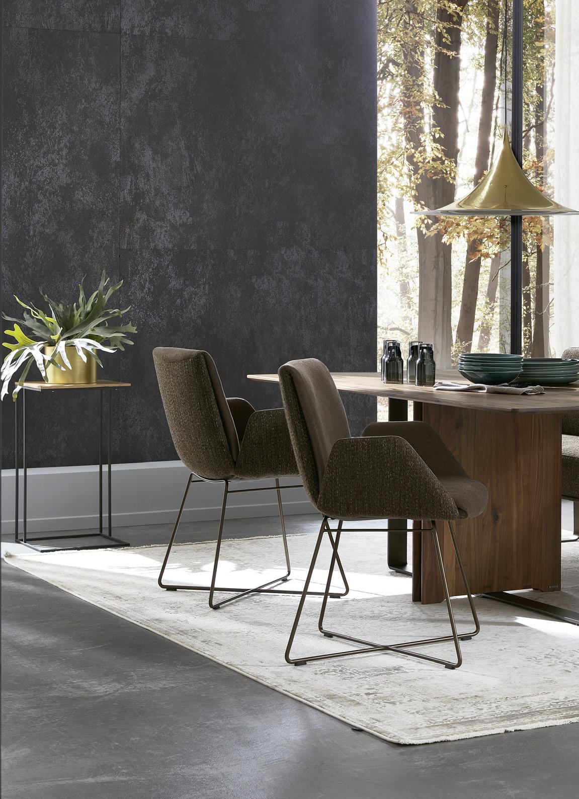 Ein weiteres Plus: Die Bezüge sind perfekt auf die Musterring Wohnsysteme abgestimmt. Bei der textilen Gestaltung Ihrer Wohnräume sind Ihrer Kreativität keine Grenzen gesetzt. Sie können sich auf einen Stoff beschränken oder verschiedene Bezüge miteinander kombinieren. Bei offen gehaltenen Räumen lässt sich durch die sorgfältige Abstimmung der Dessins ein besonders harmonisches Erscheinungsbild erzielen. So kann sich beispielsweise der für das Sofa verwendete Stoff auch an den Esszimmerstühlen wiederfinden.