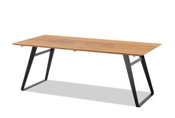 Sitzfläche und Tischplatte. Teak gebürstet mit Baumkante