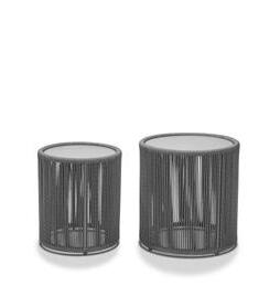 Beistelltisch mit grauer Kordelbespannung, ca. Ø 36, H 42 cm und ca. Ø 43, H 46 cm, passend zu FREILICHT Ibiza