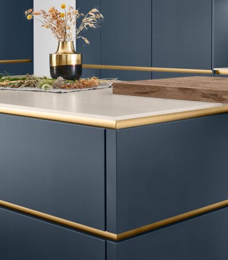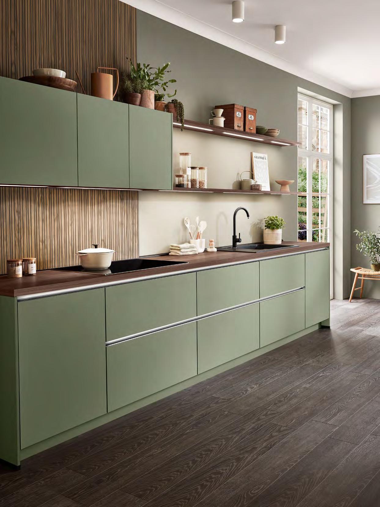 Highly customised design across the board: handleless kitchens combine modern design with functionality. With eleven handle profile colours to choose from, LINE N o ers a whole host of options for personalising your interior style, whether tone-on-tone or as a targeted accent.