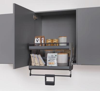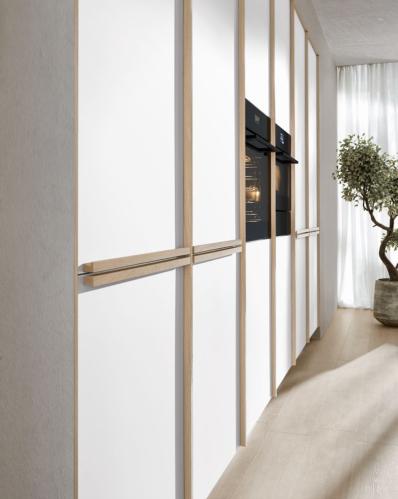 LINE One combines single-track recessed handles with the push-to-open feature for the lower pull-outs.