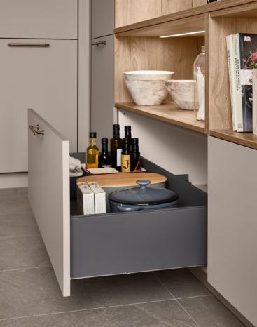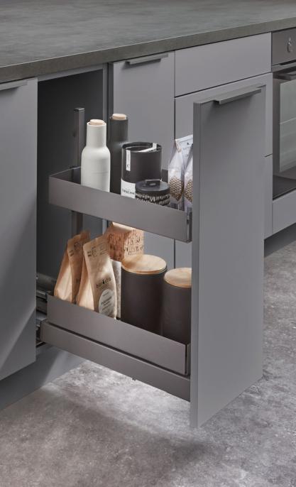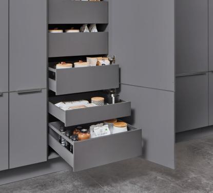 For individual needs and the most discerning demands: experience the standard for our drawer and pull-out system with our innovative nBOX. Give your kitchen an unmistakable style with premium design, maximum convenience, state-of-the-art technology and the ultimate in design freedom.