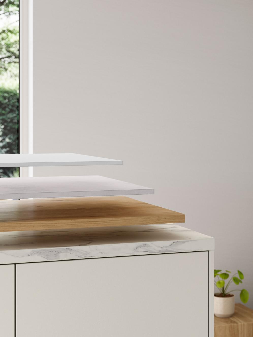 Responsible practices are a priority as early as the material selection stage. That’s why we use sustainable, recyclable materials and source many raw materials from regional partners. We source our wood primarily from PEFC-certified forests. Many of our fronts bear the ‘Blauer Engel’ (Blue Angel) eco label – like our particularly sustainable anti-fingerprint front made of 100% recycled materials.