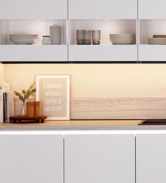 An eye for the unique: vertically illuminated recessed handles set the mood, add accents and emphasise the clean design, transforming light into a design element with genuine appeal.