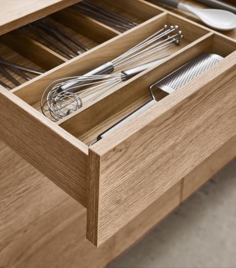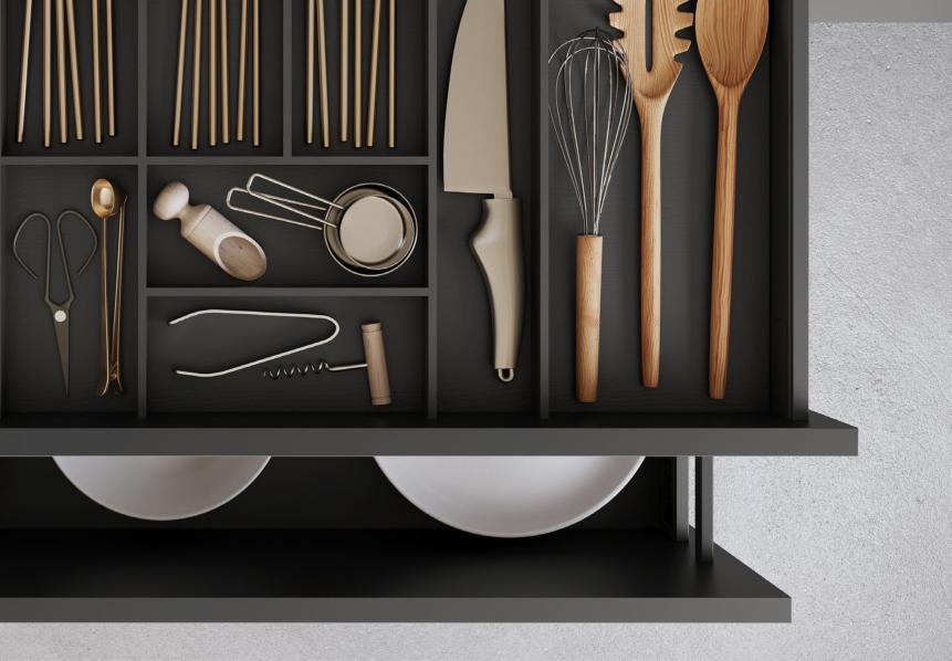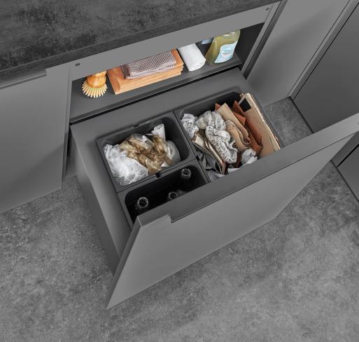 LINE One vereint einspurige Gri mulden mit Push-to-open-Funktion für die unteren Auszüge.