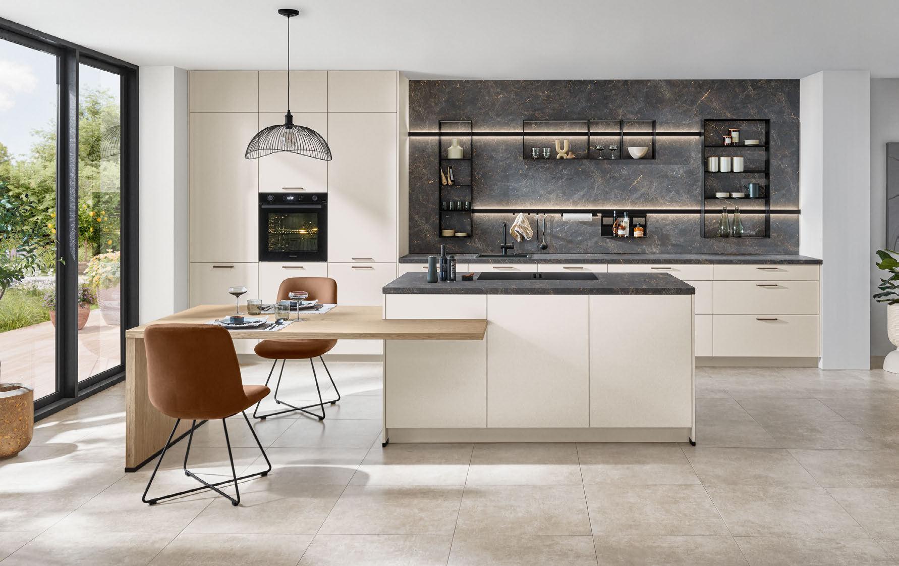 The kitchen is a hub for both cooking and daily life! We want to gather for meals and snacks, engage in conversation around the dinner table, chat with our guests, keep an eye on children as they cut vegetables and host unforgettable parties in the kitchen. Togetherness is at the heart of it all. It’s no surprise that modern kitchens are increasingly cosy, open and customised to specific preferences.