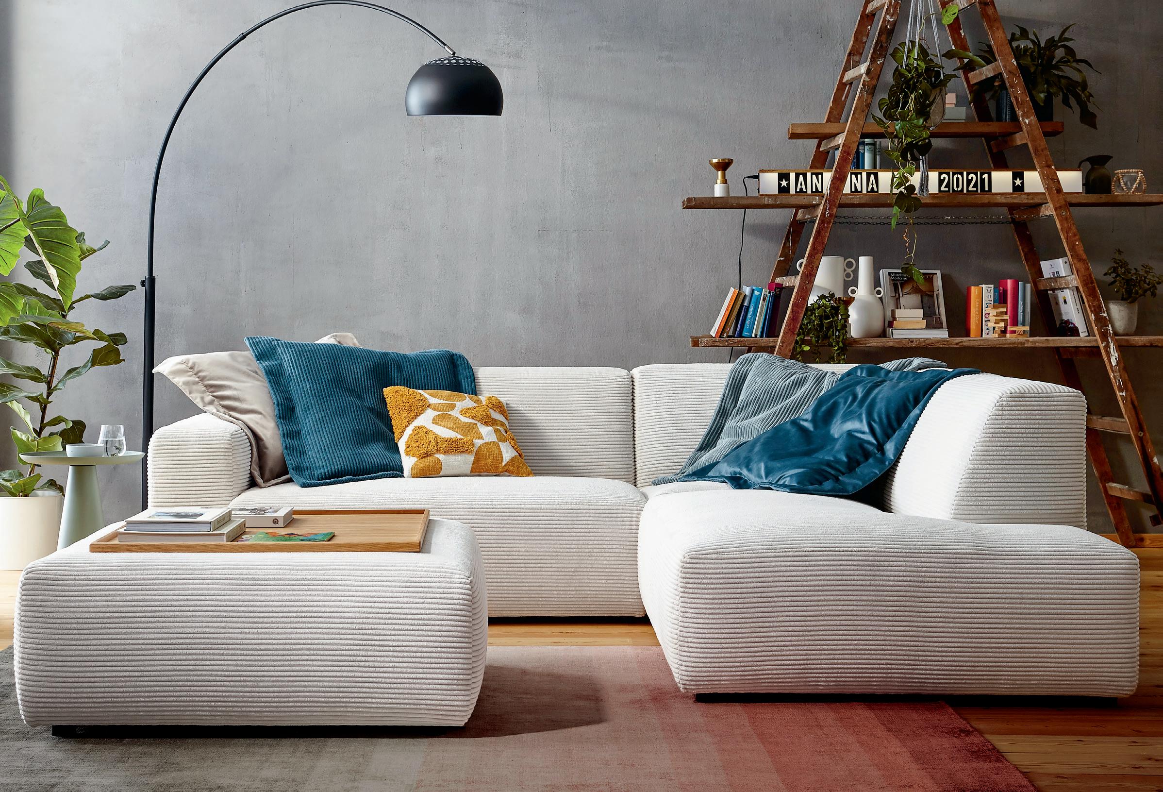 WOHNLANDSCHAFT GLOBAL TAVIRA in Sto Famous grey, 100% Polyester, Armlehne D, Holzfuß metall-ummantelt , bestehend aus: Eckelement mit Abschlussteil links, Sofaelement 2-Sitzer, Longchair mit Armlehne rechts, Stellmaß ca. 309x88x210 cm, 2498.-*, Gegen Mehrpreis: klappbare Armlehne, Relaxfunktion: elektrische Verstellung im Longchair, Bettfunktion, Stauraum, Kopfstütze
