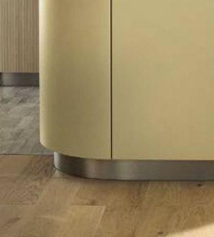 Detrás de una fachada de alta calidad se esconde una gran variedad de detalles funcionales: los frentes Matera son reciclables y ofrecen un aspecto minimalista con un valor a adido en la línea de armarios bajos gracias a la nueva división Single . El sistema Tip-On permite abrir los cajones inferiores de manera ergonómica mientras que los cajones superiores cuentan con un discreto tirador hueco situado debajo la encimera. Esto ltimo se integra perfectamente en la imagen global uniforme, que se ve reforzada por la ausencia de armarios altos y la presencia de una repisa de pared iluminada. El espacio de almacenaje sigue siendo amplio: la línea de armarios altos está instalada a la altura del techo, mientras que el dise o con un armario con persiana también permite aprovechar perfectamente la esquina de la cocina en forma de L.