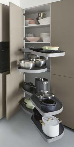 Good idea: alongside appearance, wellthought-out planning plays a decisive role. After all, cooking and preparing meals is only really fun when you have plenty of storage space and work surfaces, and everything is perfectly organised. Sensible planning means that everything is close at hand and you can cook more efficiently. That’s why we offer you a large choice of both functional and aesthetically pleasing fittings that will inspire you time and again.