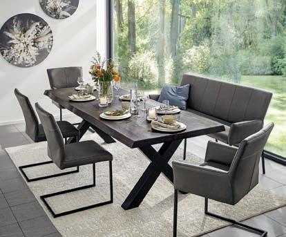 Wählen Sie aus dem umfangreichen Typenplan: 6 Tischplatten in Zerreiche/Wildeiche, lackiert/geölt 7 Plattengrößen in den Breiten ca. 90/100 cm 3 Kantenformen und 10 Fußformen Wählen Sie aus dem umfangreichen Typenplan Ihren individuellen Armlehnstuhl ab 349.3 Gestellformen 6 Polstersteppungen Verschiedene Leder- und Stoffbezüge Hochwertiger, extravaganter Sitzkomfort Handwerklich hervorragend verarbeitet NATURA HOME Tischsystem CLIFTON –Ein Tisch nach besonderen Wünschen NATURA HOME Stühle CAMBRIDGE –Handgefertigt im stylischen Vintage-Look NATURA HOME Esstisch CLIFTON, Platte: Zerreiche massiv smoke geölt, Baumkante, Plattenstärke ca. 6 cm aufgedoppelt (30+30 mm), Gestell: Metall schwarz, BHT ca. 260x76x100 cm ab 1489.QR-CODE SCANNEN und alle Infos zu den Materialien, Plattenstärken, Kantenformen und Fußformen des Tischsystems erhalten. LEDER MANUFAKTUR FORM- UND TYPENVIELFALT Abgerundetes Gestell Rundes Gestell Quadratisches Gestell Industrial transparent oder industrial schwarz, pulverbeschichtet mit groben Schweißnähten. 01 Armlehnstuhl CAMBRIDGE, Stoff Bull anthrazit, quadratisches Gestell 02 Armlehnstuhl CAMBRIDGE, Stoff Bull cognac, abgerundetes Gestell 03 Armlehnstuhl CAMBRIDGE, Stoff Relax tan, quadratisches Gestell 04 Armlehnstuhl CAMBRIDGE, Leder Rebound anthrazit, abgerundetes Gestell 05 Armlehnstuhl CAMBRIDGE, Leder, handgewachst, cuba, quadratisches Gestell 06 Armlehnstuhl CAMBRIDGE, Leder elegant, Afrika, walnut, rundes Gestell. 01 02 03 04 05 06