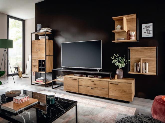 Schütte-44-22-08-09 04 01 02/03 02/03 04 05 Industrial Look pur: Massive Eiche kombiniert mit schwarz lackiertem Stahl. 05 Sideboard RAUM.FREUNDE Kai, Korpus und Frontblende massive astige Eiche natur mit Absetzungen in schwarz, Metallrahmen matt schwarz lackiert, 2 Türen, 3 Schubladen, BHT ca. 169x83x44 cm ab 1350.ab 998.Eröffnungs-Preis 02 Lowboard RAUM.FREUNDE Kai ab 1249.Eröffnungs-Preis 01 Highboard RAUM.FREUNDE Kai RAUM.FREUNDE Kai: Hochwertig gearbeitete Stauraumserie aus mattschwarz lackiertem Stahl, schwarz lackierter Eiche und massiver, astiger Wildeiche 01 Highboard RAUM.FREUNDE Kai, 2 Türen, 2 Schubladen, 1 Weinregal, BHT ca. 64x173x39 cm 02 Lowboard RAUM.FREUNDE Kai, ohne TV-Brücke, 2 Türen, 2 Schubladen, BHT ca. 165x42x53 cm 03 Lowboard RAUM.FREUNDE Kai, mit TV-Brücke, 2 Türen, 2 Schubladen, BHT ca. 212x57x44 cm. TV-Brücke erhältlich in zwei Größen, beidseitig montierbar 04 Wandregal RAUM.FREUNDE Kai, BHT ca. 54x54x29 cm ab 215.03 Lowboard RAUM.FREUNDE Kai, mit TV-Brücke ab 1365.-