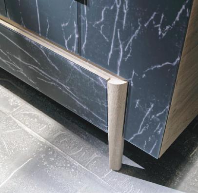 Woods: grey rustic oak varnished & Rustic black oiled wild oak Bois: chêne rustique gris laqué & chêne sauvage rustique huilé noir