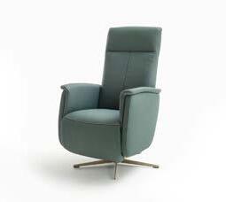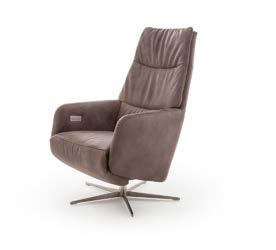 Relaxsessel BEPPO in Leder; elektrische Fußteil- und Rückenverstellung; Kreuzfuß und Armlehnenstrebe in Metall gebürstet