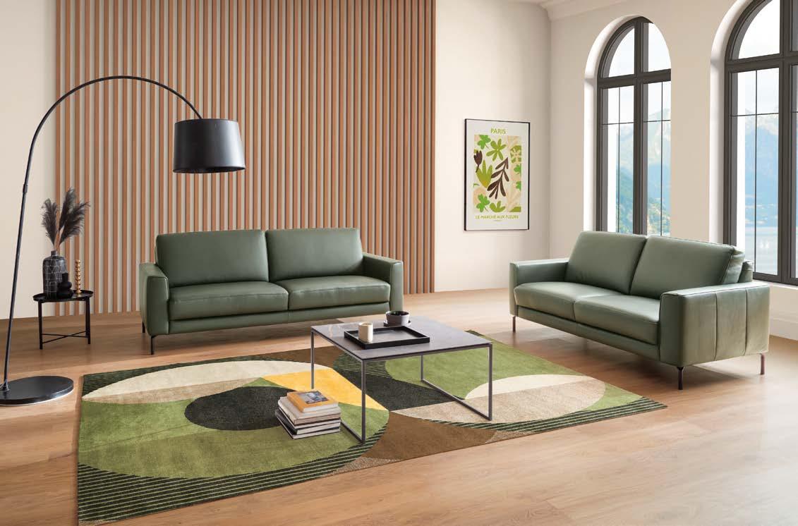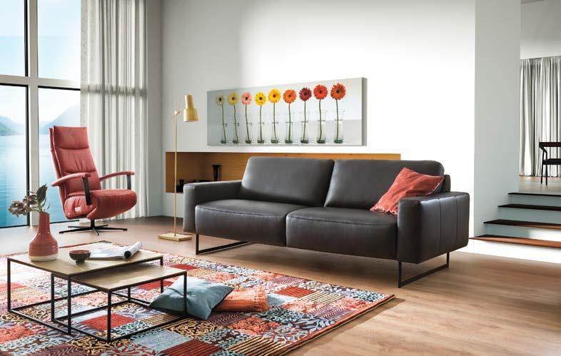 Garnitur BENSON in Leder; Armlehne D; Metallkufe schwarz; inklusive Kopfteilverstellung; Kissen sind Deko