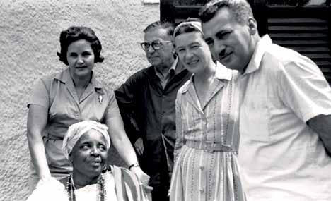 En cambio, Duarte, de la UFMG, no observa rupturas significativas en la trayectoria literaria del escritor. Es lo que trata de argumentar en su recientemente publicado Narrador do Brasil: Jorge Amado, leitor de seu tempo e de seu país [Narrador de Abajo, de izquierda a derecha, Zélia Gattai, los filósofos Jean-Paul Sartre y Simone de Beauvoir y Amado con Mãe Senhora (sentada) en la década de 1960, en Salvador [Bahía]. Al lado, las portadas de Jubiabá y de la edición estadounidense de Gabriela, clavo y canela