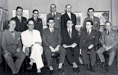 Arriba a la izquierda, Dinorá de Carvalho en la década de 1920, y en la parte superior, el musicólogo Curt Lange (el cuarto sentado desde la izq.) en 1934, en un encuentro en Río de Janeiro, con invitados como Mário de Andrade (de blanco)