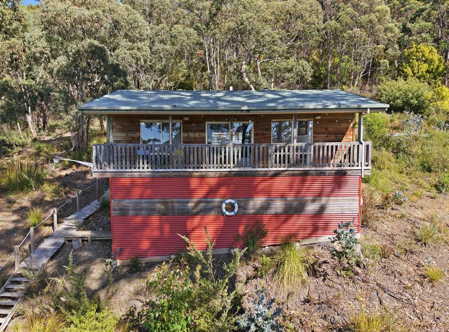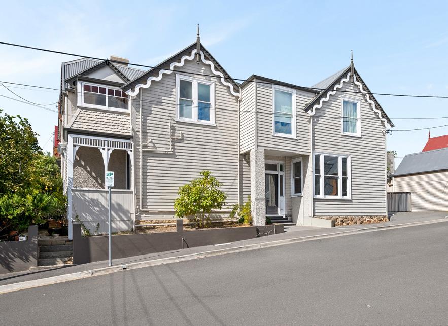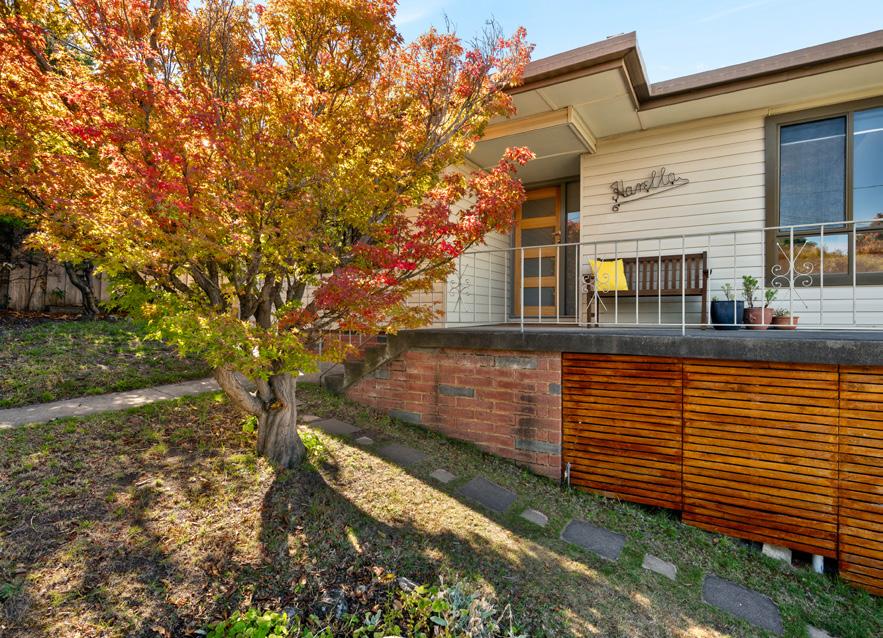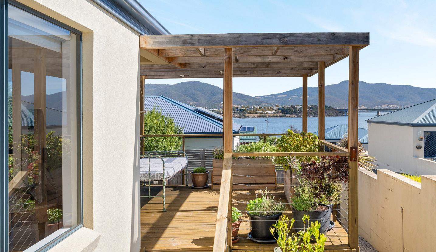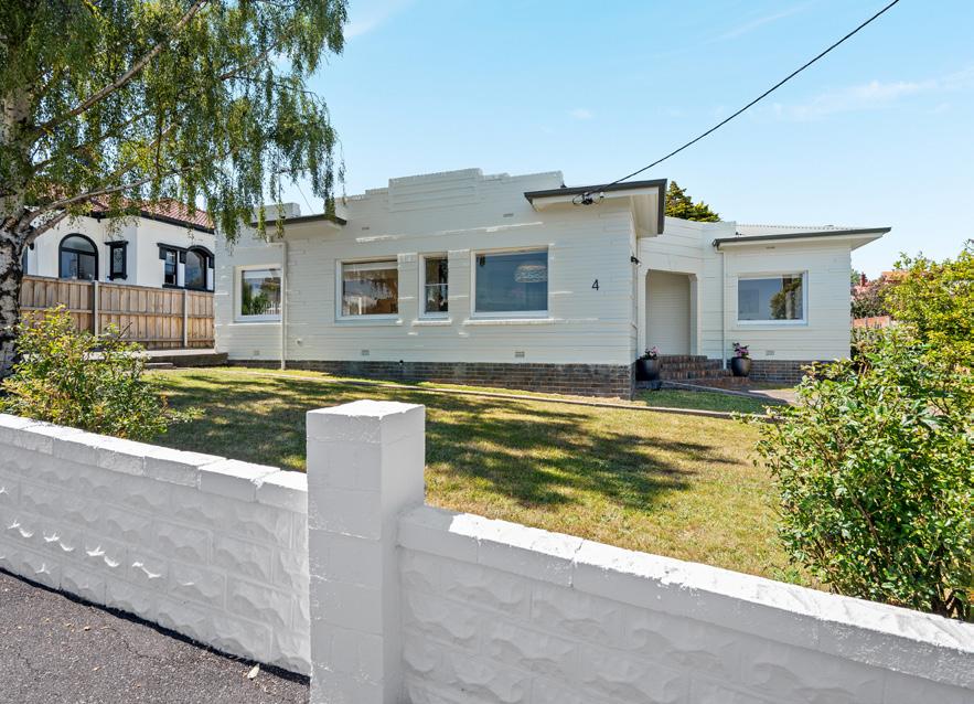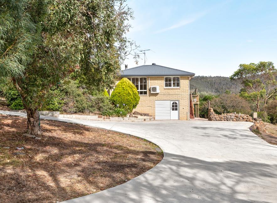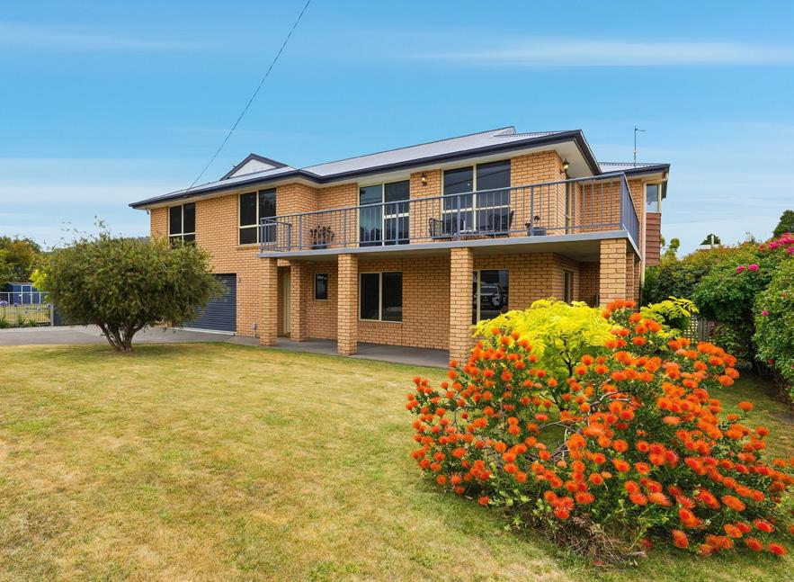 Upstairs, the home connects beautifully to its outdoor spaces. A large front deck captures the view, creating an elevated vantage point across Hobart, while to the rear, a substantial entertaining deck with covered seating provides a private and sheltered space for yearround use. Terraced gardens add further depth and usability to the outdoor setting.