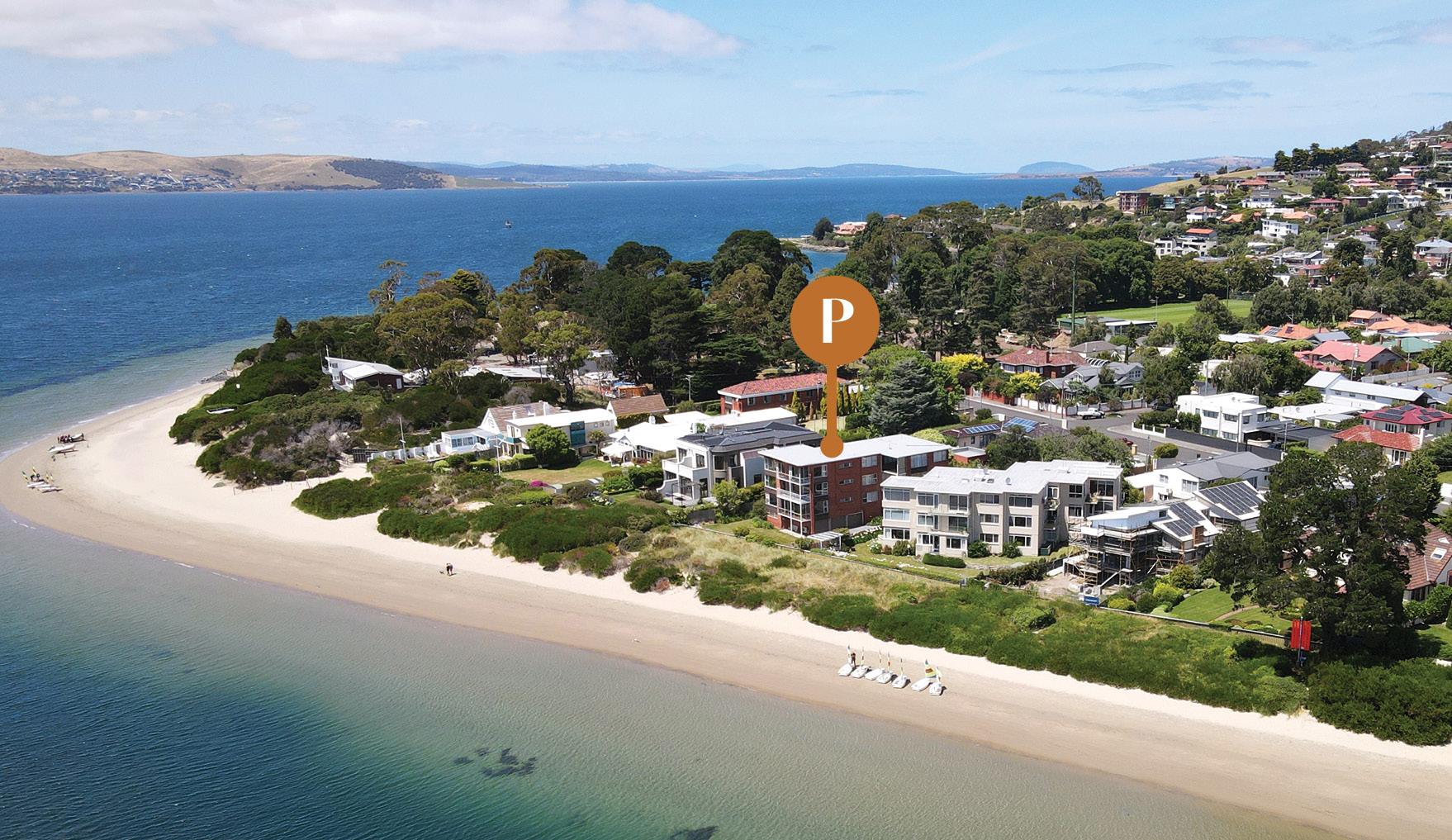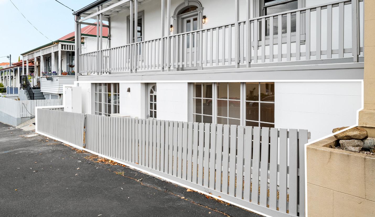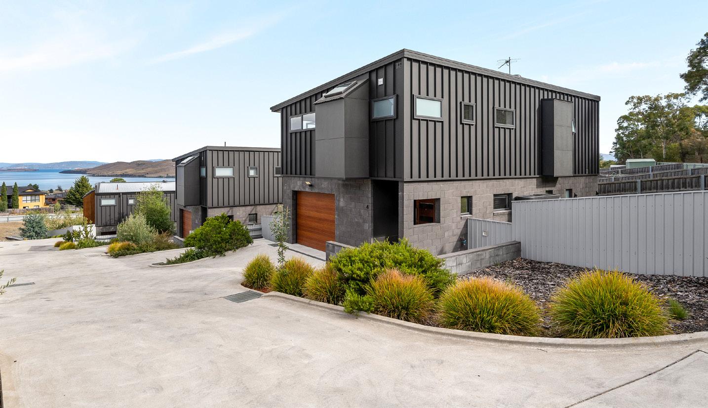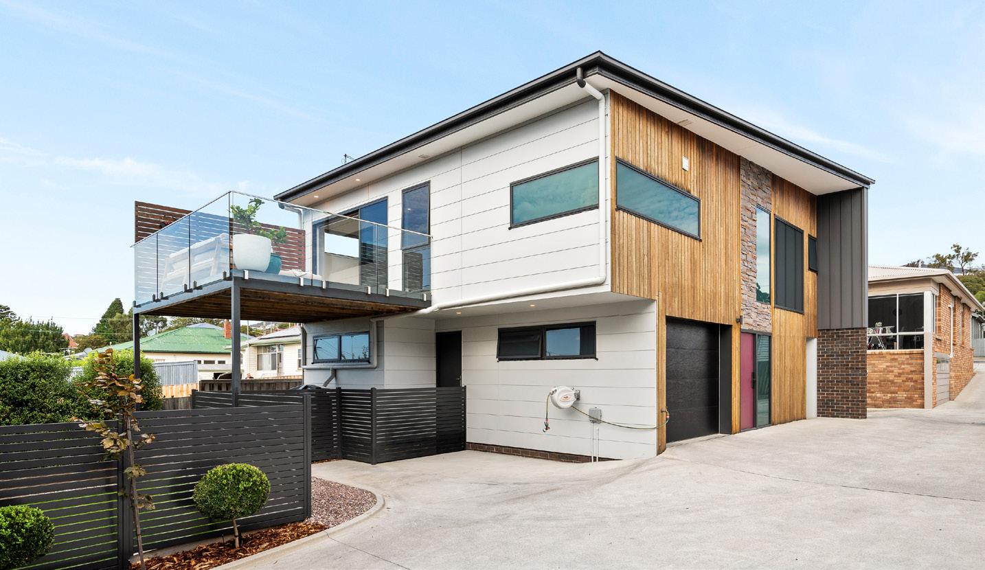 Upstairs, the home connects beautifully to its outdoor spaces. A large front deck captures the view, creating an elevated vantage point across Hobart, while to the rear, a substantial entertaining deck with covered seating provides a private and sheltered space for yearround use. Terraced gardens add further depth and usability to the outdoor setting.