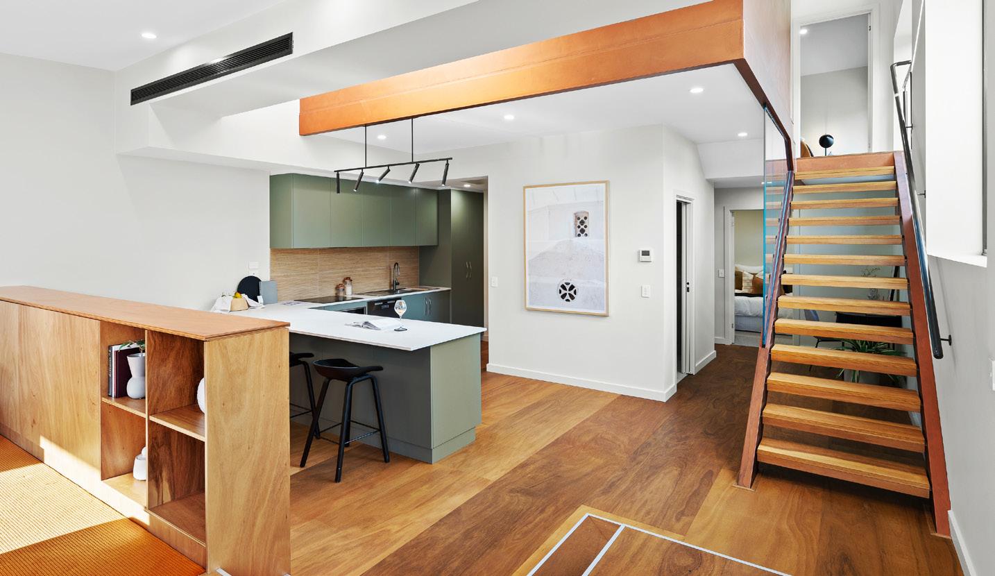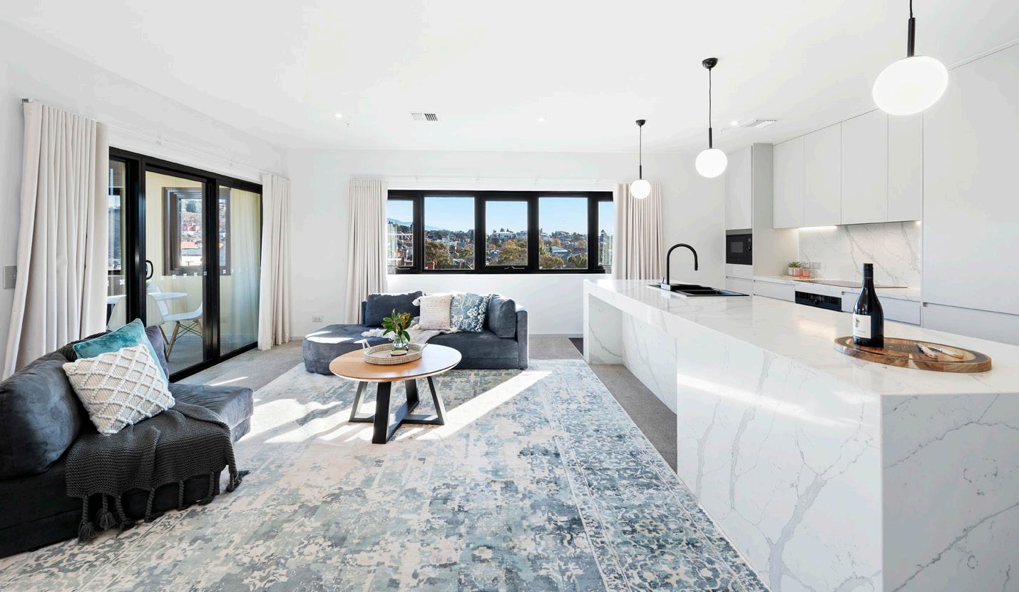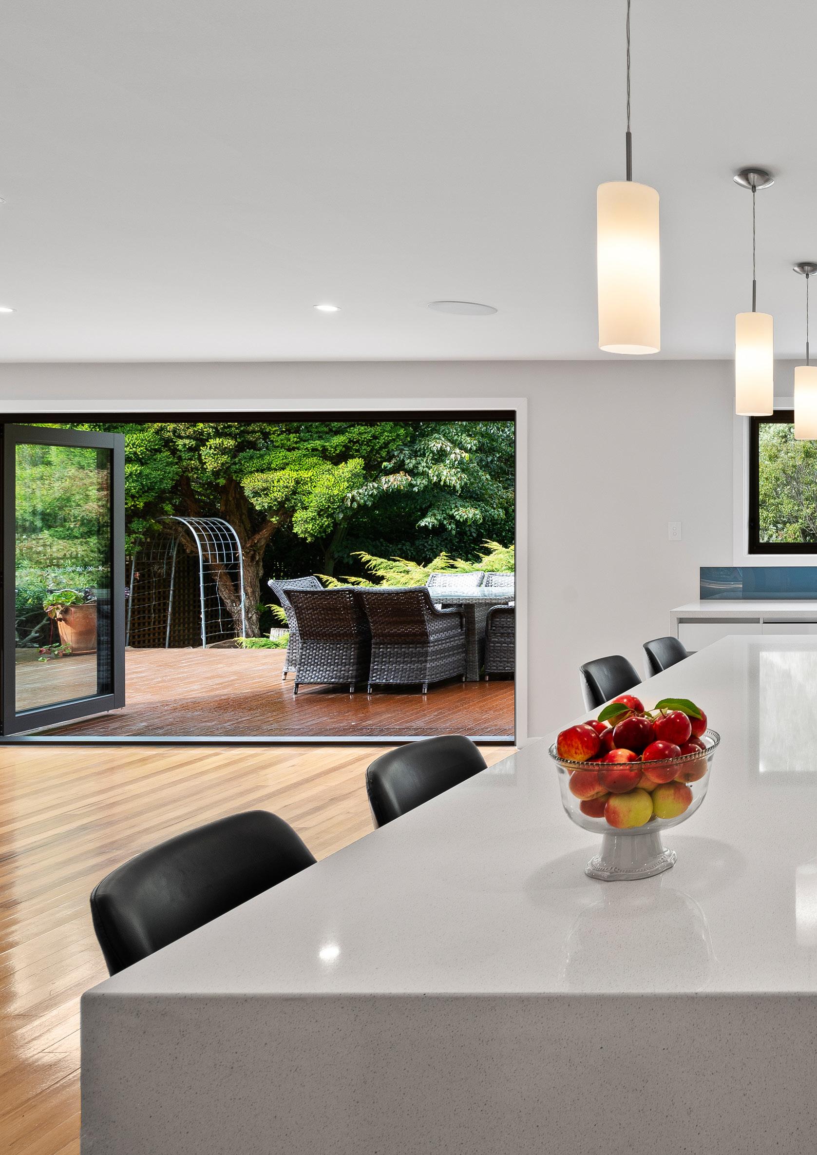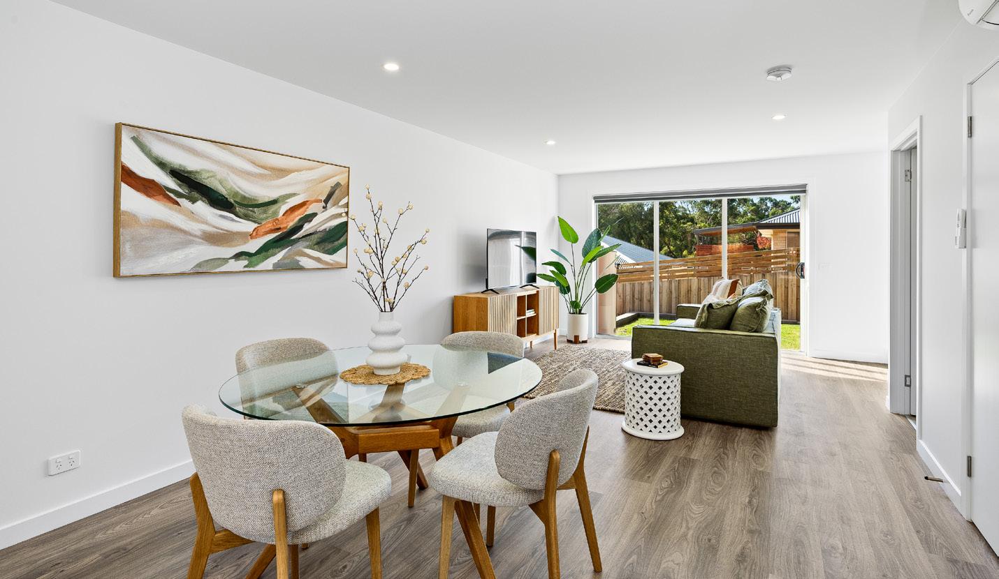 The open plan living and dining area forms the heart of the home, offering a cohesive and highly liveable layout. The kitchen is positioned just off this space, connected via a functional breakfast bar that provides separation without interrupting the flow.