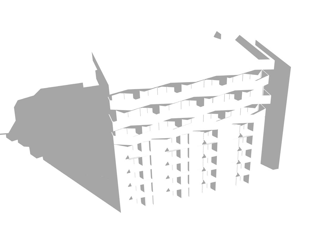Auch bei dieser Studie habe ich bei der ersten Konzeptplanung teilgenommen. Zusammen mit unserem kleinen Team wurde während ein paar Workshops die Konzeption des Hauses mit der Berücksichtigung der Bestandssituation etnworfen und Aufgaben zur graphischen Darstellung zwischen uns verteilt. Im meinen Fall lag der Fokus auf der Fassade, Axonometrie und allgemein Konzeption der Fassaden.