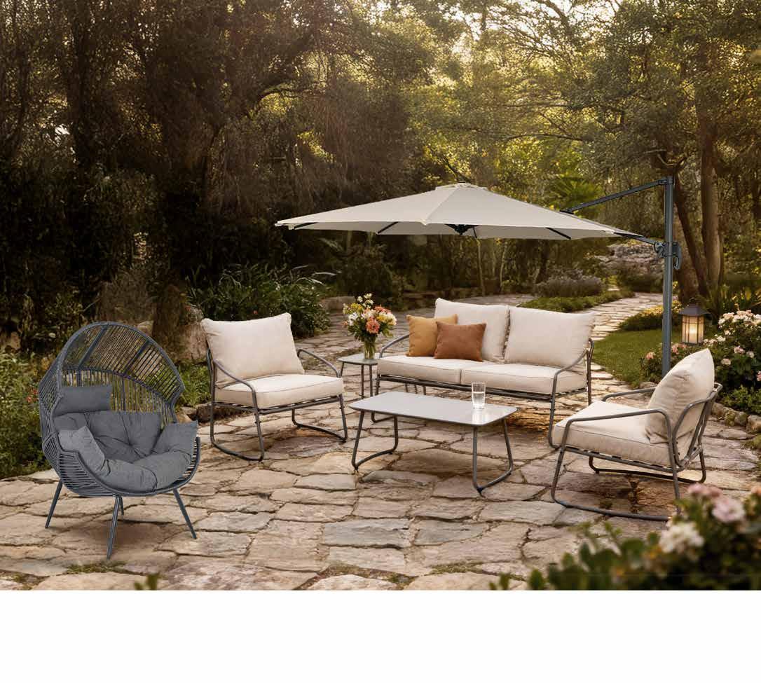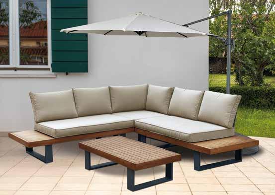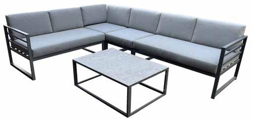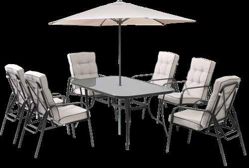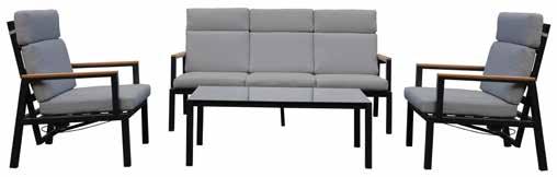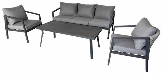 Vrtna garnitura NOELLE čelik, 8 cm jastuci od poliestera, kaljeno staklo, dvosjed: 143 x 79 x 67 cm, 2 x fotelja: 64,5 x 79 x 67 cm, stolić: 90 x 50 x 42,5 cm // 405812