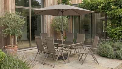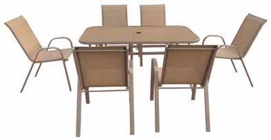stol: 150 x 90 x 73 cm, 6 x stolac: 56 x 68 x 105 cm, suncobran: ø 267 x 241 cm, čelik, kaljeno staklo, tekstilen //405792