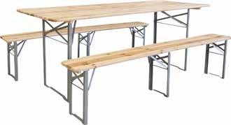 stol: 200 x 80 x 76 cm, 2 klupe: 200 x 25 x 46 cm, 3 noge na klupi, jelovina, lakirana prozirnim lakom 330489