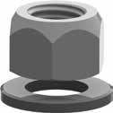 For sizes M8 to M48, these accessories are available as a set: The nut manufactured according to DIN 980V in strength category 10. A washer completes the set. From size M56, the nut is 1,5 times as long and is manufactured according to DIN 6331.