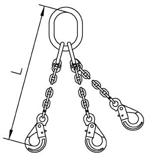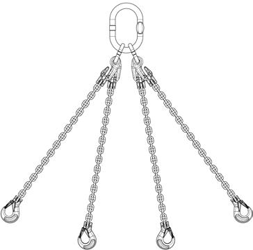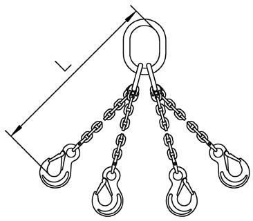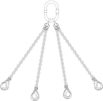 Should these parameters not be met, then the load is considered asymmetric and an expert must be called to evaluate the lifting process. In case of doubt the load capacity must be reduced to that of a single-leg chain sling. Individual chain legs which are not in use must be hung back into the master link and the working load limit reduced accordingly.