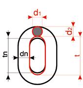- Wear: Wear is determined as the mean value of two measurements of diameters d1 and d2 carried out a right angle (see drawing). The chain must be discarded.