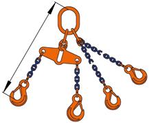 Para que se puedan aplicar las capacidades de carga de las cadenas de elevación pewag, se parte de la base de que la solicitación de los ramales es simétrica. Al levantar la carga, los ángulos de inclinación resultan iguales y los ramales están dispuestos de manera simétrica entre sí.