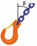 Para garantizar un uso seguro, los puntos de anclaje y el tipo de cadena deben seleccionarse de forma que los ángulos de inclinación de todos los ramales de cadena se encuentren dentro del rango especificado en la etiqueta de capacidad de carga. En el caso óptimo, todos los ángulos de inclinación son iguales; deben evitarse los ángulos inferiores a 15°, ya que conllevan un mayor riesgo de inestabilidad de la carga. ¡Debe evitarse en todos los casos el uso de cadenas de elevación con un ángulo de inclinación superior a 60°!