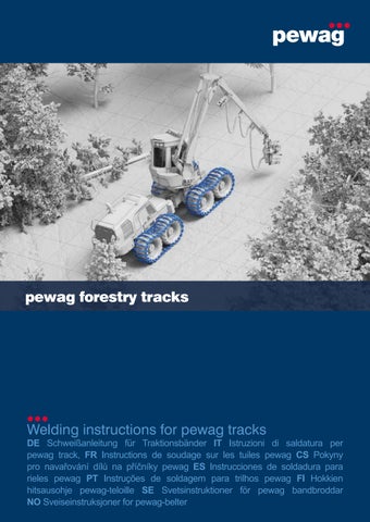 DE Schweißanleitung für Traktionsbänder IT Istruzioni di saldatura per pewag track, FR Instructions de soudage sur les tuiles pewag CS Pokyny pro navařování dílů na příčníky pewag ES Instrucciones de soldadura para rieles pewag PT Instruções de soldagem para trilhos pewag FI Hokkien hitsausohje pewag-teloille SE Svetsinstruktioner för pewag bandbroddar NO Sveiseinstruksjoner for pewag-belter