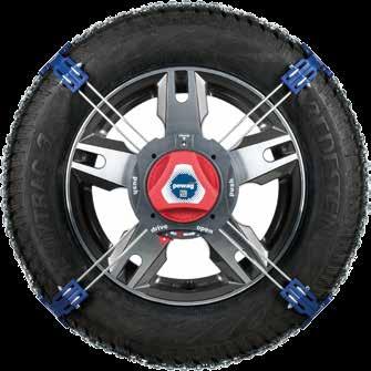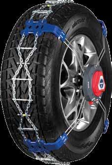 Chaîne à neige innovante pour un montage infaillible sans crochet de verrouillage. Remise en tension automatique.