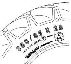 Pour la plupart : indication métrique, par exemple : 380/85 R28
