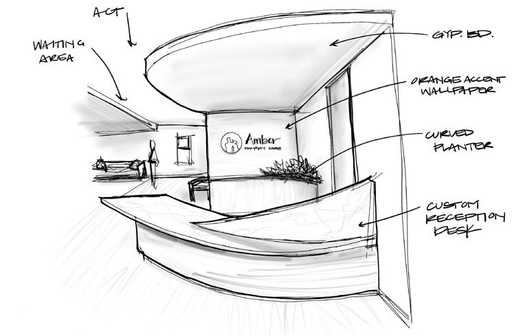 The Reception space emphasizes the idea of letting visitors in on the “secret of KOVAL” by welcoming guests through warm, comforting cove lighting and sightlines to the adjacent classroom that encourages further exploration of the educational space.