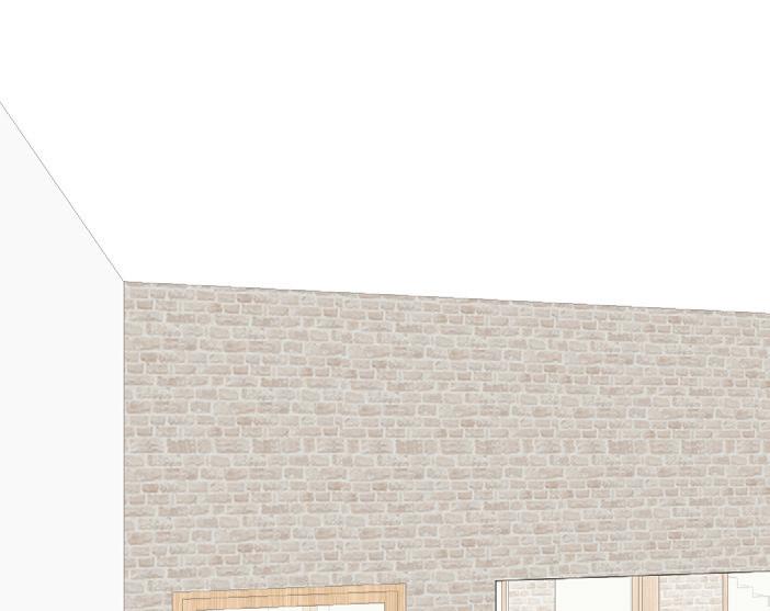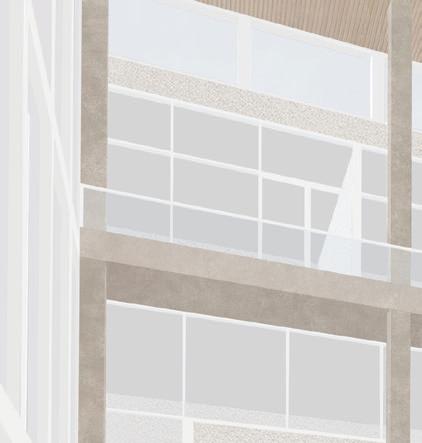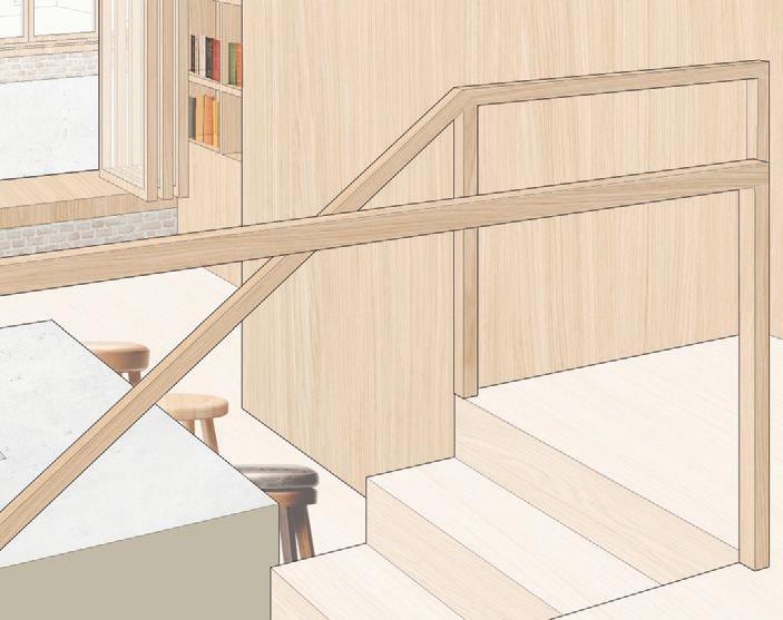 (ABOVE) AXON DETAIL | The staircase is a central component of the building, so I incorporated a curtain wall to let in natural light and a brick screen wall to highlight this part of the program.