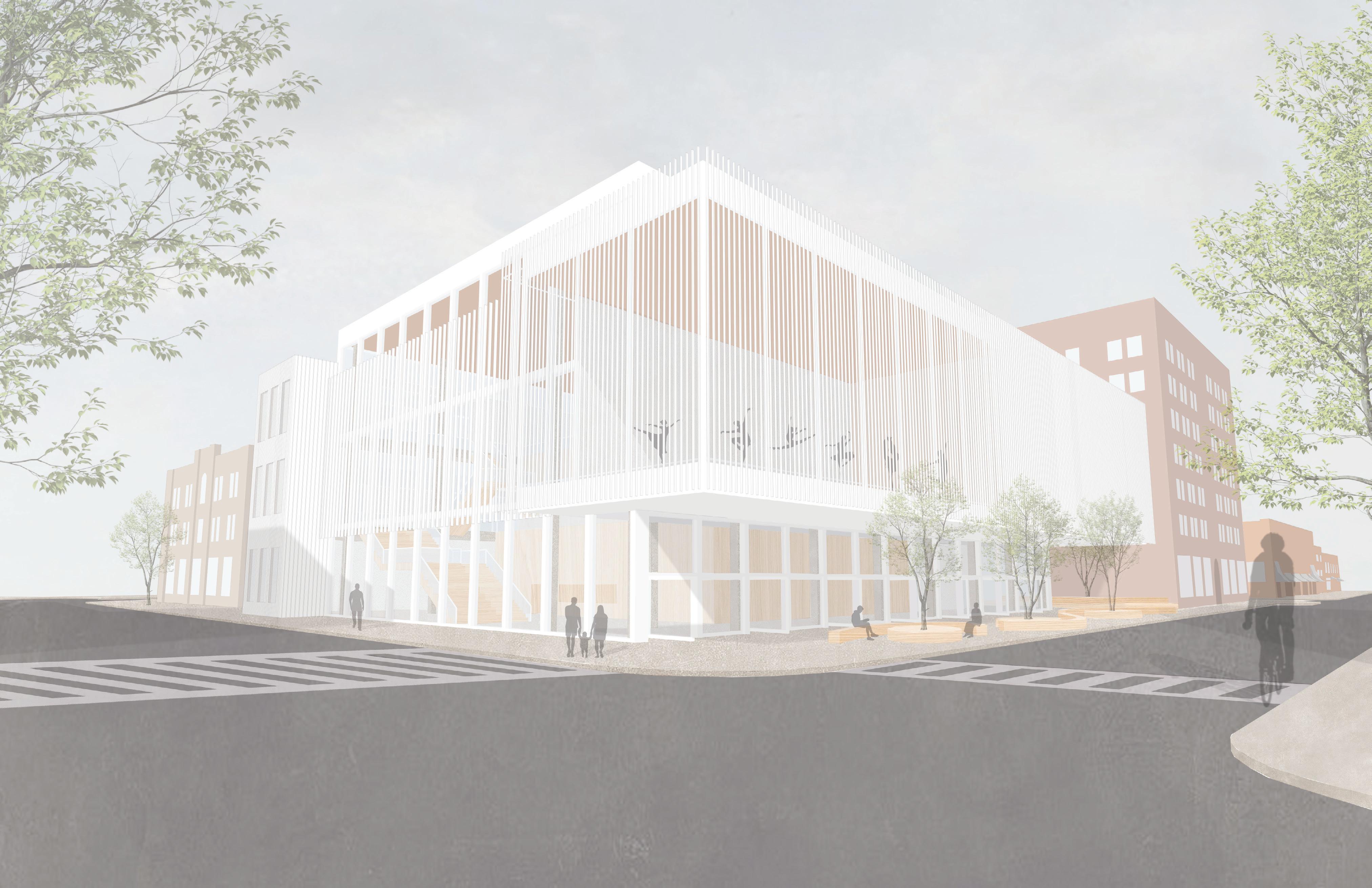 This project is located at the intersection of Tremont St and Melnea Cass Blvd in Boston, Massachusetts. Situated between a residential neighborhood to the South and Northeastern University’s campus to the North, the design fosters a strong sense of community within this mixed-use housing development. The layout includes a central courtyard, with two L-shaped building volumes positioned to align with the street corner and preserve an existing tree. The building’s height variations respond to the surrounding urban context, blending the residential, educational, and city scales.